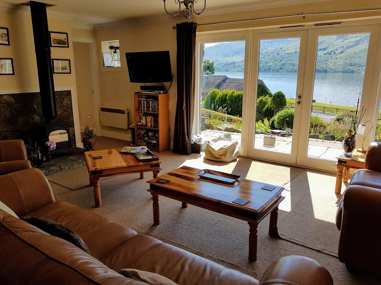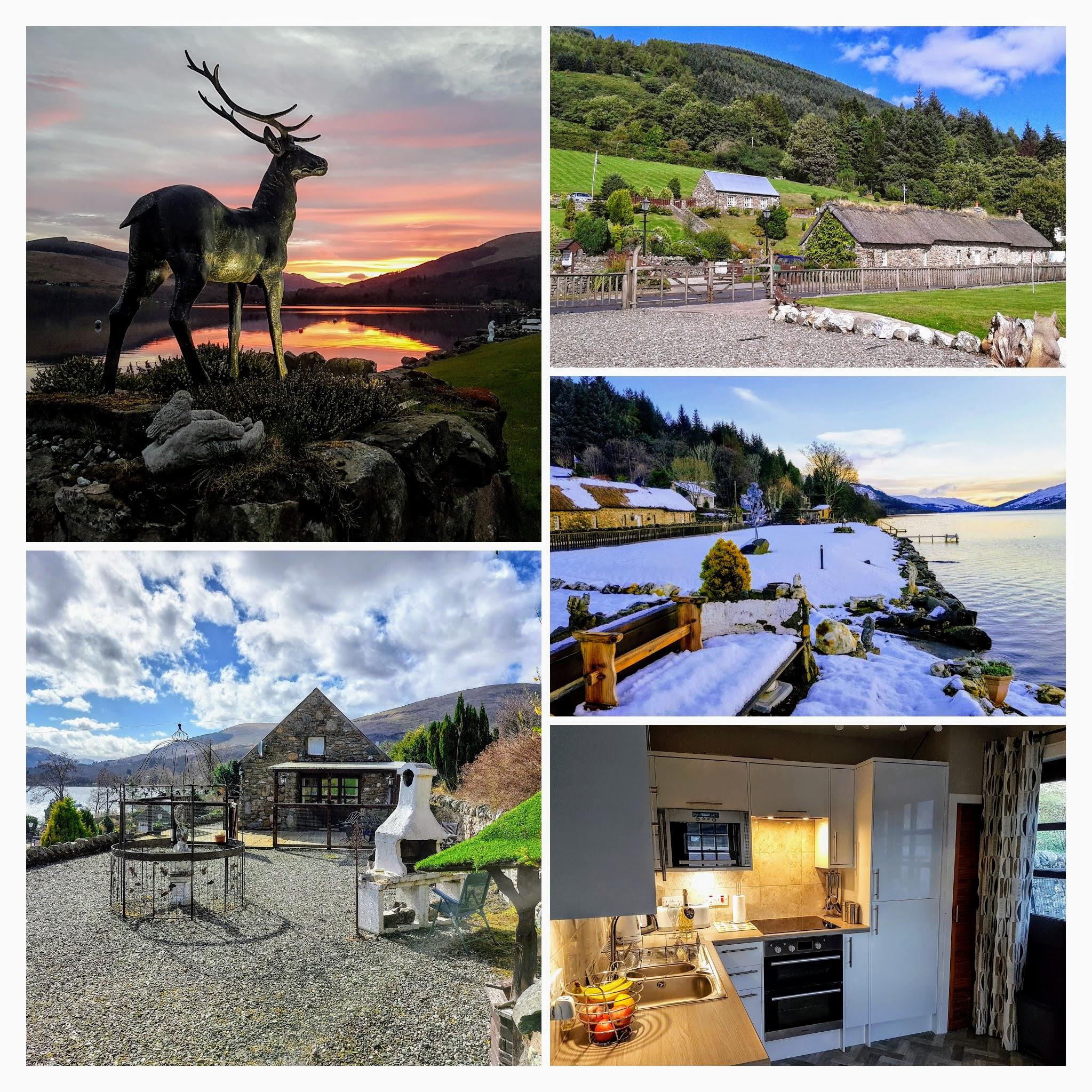 Lochearnhead lochside luxury cottage for 4 and pet friendly cottage for 3 plus 2 pets, with stunning views. On the banks of Loch Earn within the three acre gardens for open water swimming, petanque, watersports and fishing. Two hotels and a watersports centre in 200 metres, Style to off road walk. Short Term Let - STL licence numbers ST00072F and ST00073F